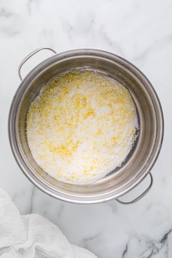 Step 1. In a medium-sized saucepan, whisk together the sugar, cornstarch, salt, and lemon zest.