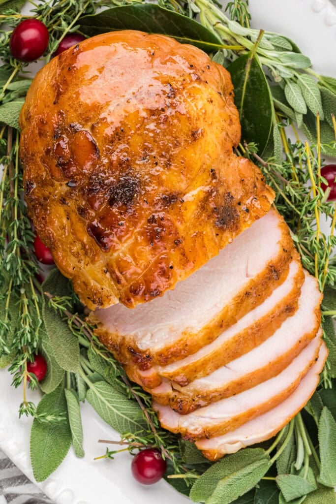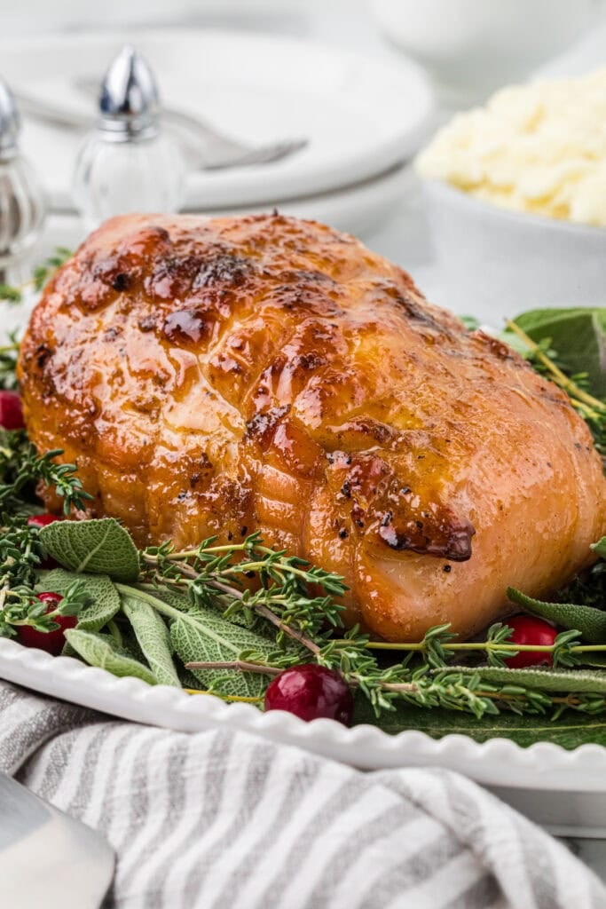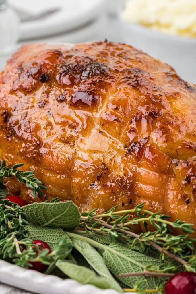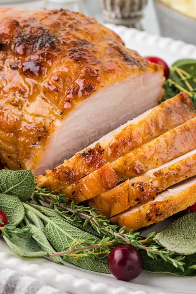 This Brined Boneless Turkey Breast with Maple Glaze is tender and flavorful. The overnight brine, seasoning, and maple butter glaze, give it an incredible depth of flavor and just the right balance of slightly sweet and savory. This is an easy, elegant dish for dinner or for a small group for Thanksgiving if you don’t want to make a whole turkey.