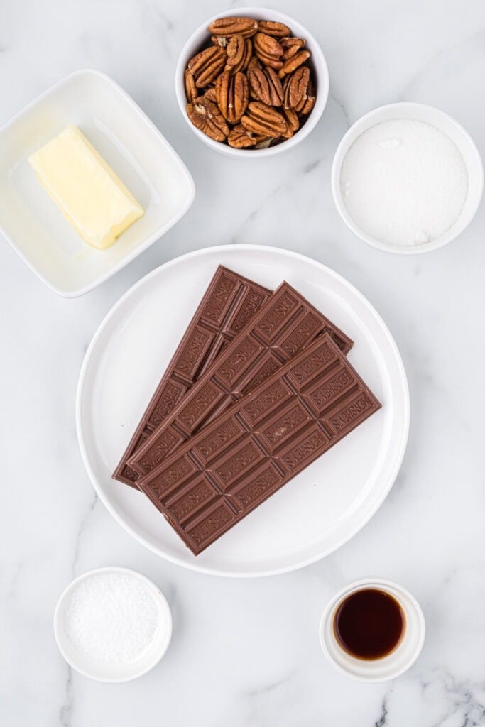 There’s something about the combination of the crunchy, buttery toffee, the creamy chocolate, and the nutty pecan crunch that is so incredibly addictive and delicious. I also like making these because they are a gluten-free treat to add to a cookie platter for those who can’t eat cookies as much over the holidays.