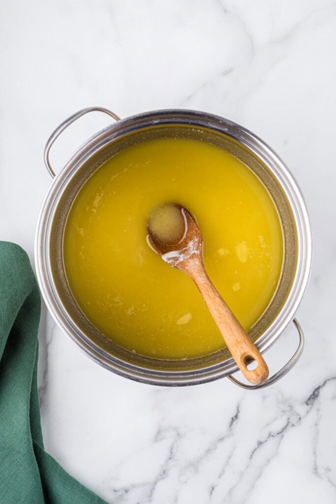 - Start over medium or medium-low heat to melt the butter and dissolve the sugar slowly and evenly. Rushing this step with high heat can lead to separation.