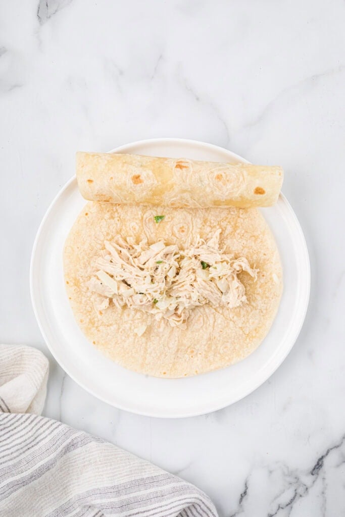 - If you use corn tortillas instead of flour tortillas, you need to warm them to make them more pliable for rolling. You can steam them with a wet paper towel for 20-30 seconds in the microwave, or heat them in a dry skillet on each side briefly. Dip them in the sauce before adding the chicken mixture, and add about 1/4 cup of mixture instead of 1/2 cup, and fill and roll.