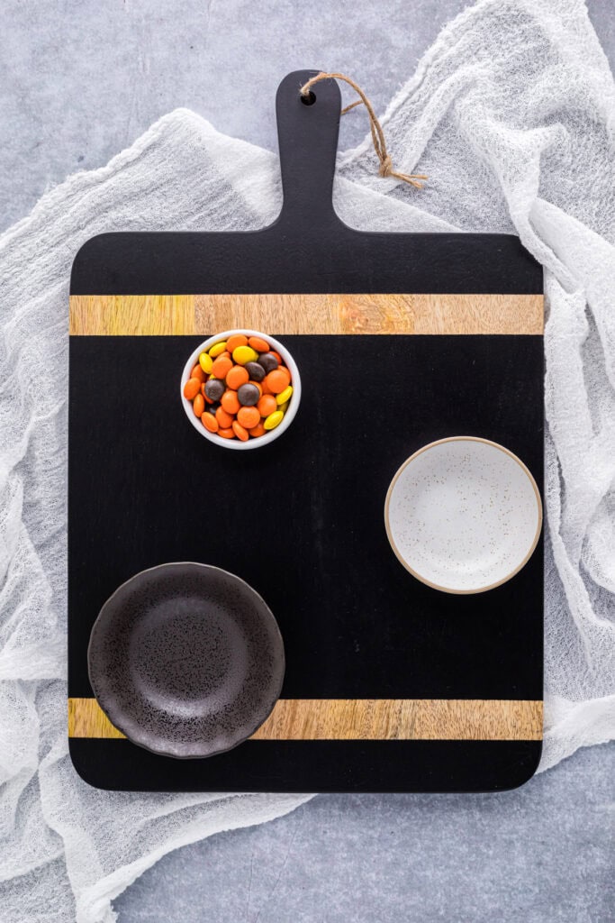 The great thing about charcuterie boards is that you get to choose your favorite foods to use. For this board, I focused on Halloween treats and savory snacks and used specific Halloween colors. Feel free to fill a board with your favorites or with what you have on hand. Here are a few ideas to substitute items on the ingredients list if needed: