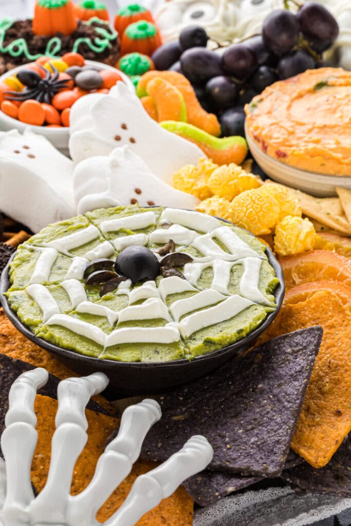 This is so cute and festive! Love the little olive spider in the guacamole!!